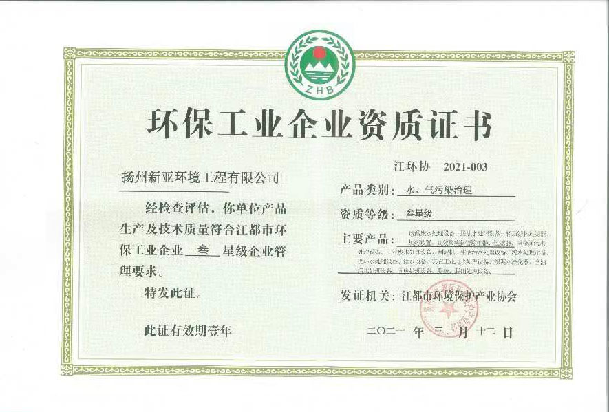 您好,歡迎訪問 揚州新亞環(huán)境工程有限公司 ( 環(huán)保行業(yè)高新技術(shù)企業(yè) ) 官方網(wǎng)站!